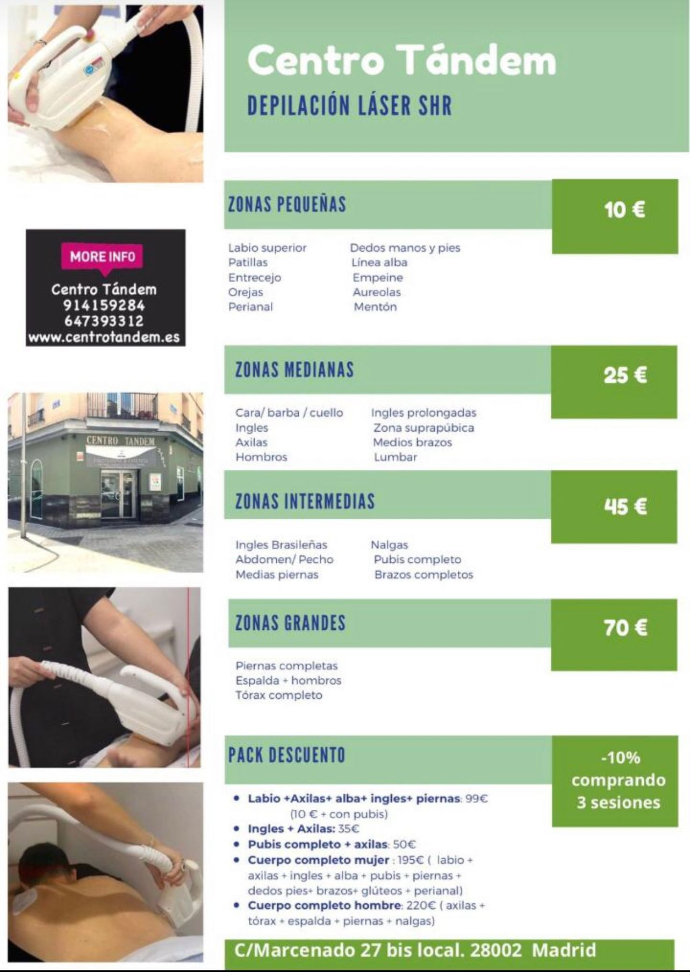 SHR es adecuado para todo tipo de piel, incluso fototipos oscuros, debido a la tecnología y a las técnicas utilizadas, además en nuestro centro de depilación láser en Madrid, en la zona de Prosperidad podrá encontrar ofertas de depilación difíciles de conseguir en otros sitios.